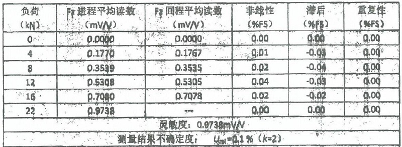 在標(biāo)定的時(shí)候,我們需要對(duì)傳感器進(jìn)行來回逐增遞減加載,如下圖是一個(gè)對(duì)22KN量程的力傳感器進(jìn)行標(biāo)定加載,通過多次來回加載,就可以得到該傳感器的非線性,滯后,重復(fù)性,這些都是考察一個(gè)傳感器精度的重要指標(biāo)。